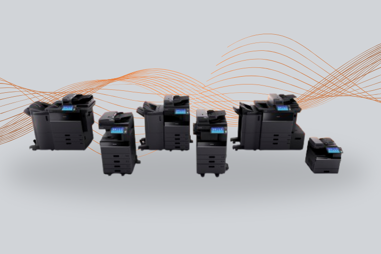 Sistemas multifuncionais A4 a cores, com velocidade de impressão até 40 páginas por minuto, tornando-os perfeitos para a gestão de documentos digitais.