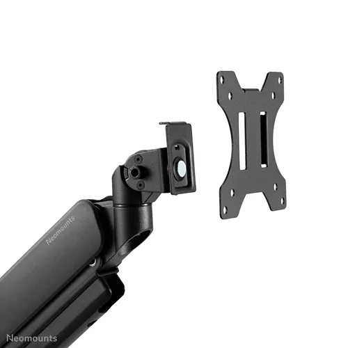 O DS70-450BL1 é adequado para ecrãs que cumprem a norma de furos VESA de 75×75 ou 100×100 mm. Os padrões de furos não utilizados podem ser cobertos com uma das placas adaptadoras VESA da Neomount. O suporte de mesa está equipado com um sistema VESA de aperto rápido e vem com uma braçadeira de fixação superior e um ilhó para uma instalação rápida e fácil.