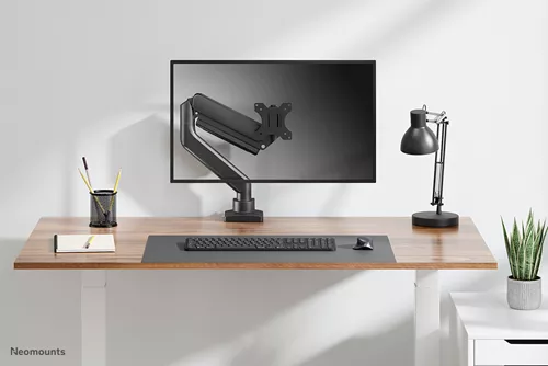 Single monitor arm – 17-42″ – 1-15 kg (curved 11 kg) – gas spring – 180°-stop – Topfix – Easy Install-model – 100% plastic-free packaging – black