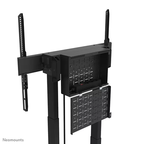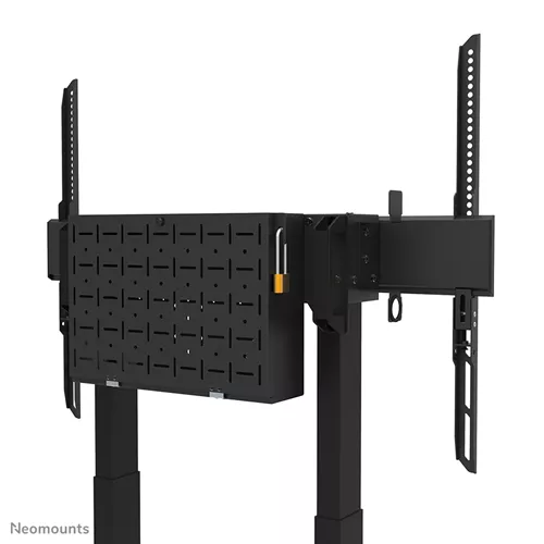 O Elevador MOVE Neomounts FL55-875BL1 é um suporte de chão móvel para monitores até 100″ com uma capacidade máxima de peso de 110 kg. O carrinho possui um ajuste de altura motorizado de 65 cm (35 mm/segundo), é operado por controlo remoto com fios e possui um sistema anti-colisão para maior segurança. Um compartimento para ferragens ventilado e com fecho, com abertura para cabos, está incluído e é opcional para a instalação.