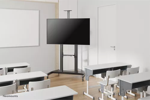 O Neomounts PLASMA-M1950E é um suporte de chão móvel para ecrãs até 100″ e uma capacidade de peso de 100 kg. Este carrinho permite utilizar um monitor de grandes dimensões em vários ambientes. Desfrute do posicionamento de visualização ideal para públicos de pé e sentados, onde desejar.